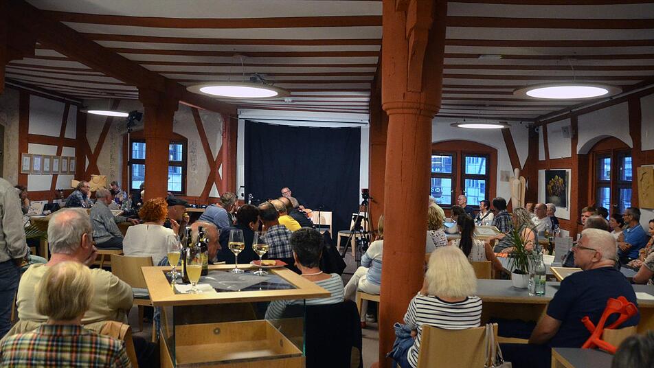 Klaus Hanisch, der in achtziger Jahren bei der Saalezeitung volontiert hat, arbeitet nun als Autor und Reporter für die Fernsehredaktion des Bayerischen Rundfunks und widmet sich dem Thema. Am Montag, 27. August, soll in der Rundschau des Bayerischen Fernsehens ab 18.30 über den English Folk Club und seinen Streit mit der GEMA berichtet werden, denn Dennis Dennehy hat angekündigt, wegen der seiner Meinung nach ungerechtfertigten Forderung notfalls auch vor Gericht zu gehen. Aktuell ist das Problem für die nächsten jeweils monatlichen Auftritte geklärt - der Betreiber von KissVino hat sich bereit erklärt, die dann möglicherweise noch anfallenden GEMA-Gebühren zu übernehmen. Das alte Rathaus mit seiner Vinothek wurde jedenfalls vom Publikum voll angenommen, so dass aus allen Etagen noch Stühle beigetragen werden mussten.