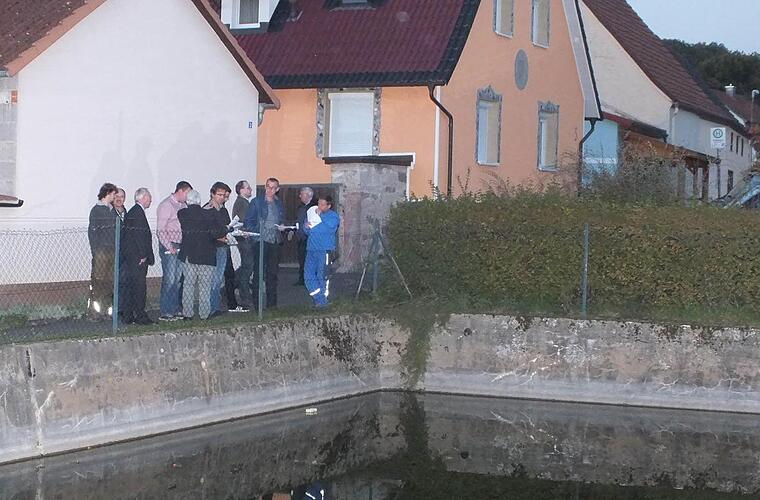 Bei der Ortsbesichtigung nahmen die Gemeinderäte außerdem den Vorplatz am Feuerwehrhaus von Gr0ßenbrach in Augenschein. Er soll künftig von Feuerehr und Dorfgemeinschaft gemeinsam genutzt werden und auch als Festplatz dienen. Vorgesehen sind auch hier drei Sitzmauern.