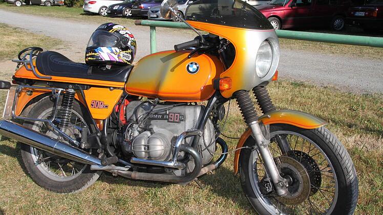Man sieht, dass das Motorrad der Stolz seines Besitzers ist. Es glänzt und ist blitz blank poliert, so dass sich die Motorradfreunde sogar in ihr spiegeln können. Eine BMW aus dem Jahre 1972 steht ein Stück weiter hinten.