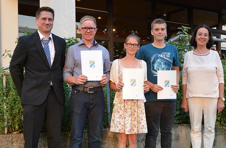 Verteilung der Zeugnisse. Prüfungsbeste waren Tobias Neugebauer mit einem Notendurchschnitt von 1,77, Jana Runkel mit einem Notendurchschnitt von 2,27 und Florian Götz mit einem Notendurchschnitt von 2,33.