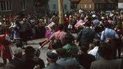 Pferdegespann und Tanzgruppen