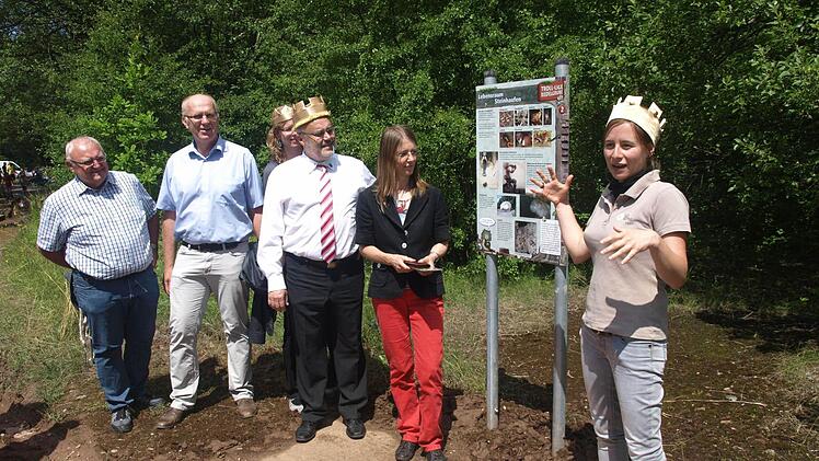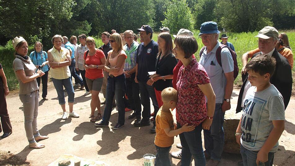 Bei ersten Führungen konnten die Gäste die große Vielfalt der Riedelgrube erleben. Geonautin Nicole Wirl (Maßbach) stellte vor allem die Stationen zu John Bauer vor, Jochen Willecke (Hammelburg) ging auf das "Tierhotel" in der ehemaligen Trafostation ein, weitere Mitarbeiter der Kreisgruppe im Bund Naturschutz stellten Flora und Fauna vor.