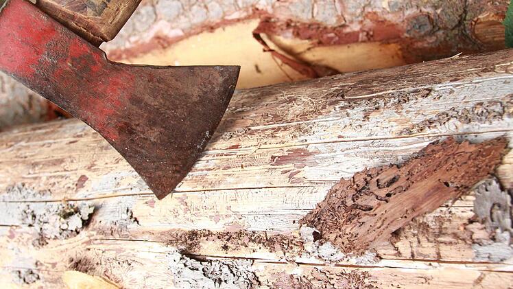 Sie sehen aus wie ein Kunstwerk und sind trotzdem tödlich. Die dünnen Gänge schlängeln sich wie ein feines Labyrinth in der Rinde der Fichte. Von außen würden die wenigsten dem Baum etwas anmerken. Gunter Hahner erkennt die Einbohrlöcher des Borkenkäfers sofort. Für die Fichte kommt jede Hilfe zu spät. Sie geht langsam zugrunde. Der Stamm liegt am Waldrand, bereit zum Abtransportieren.