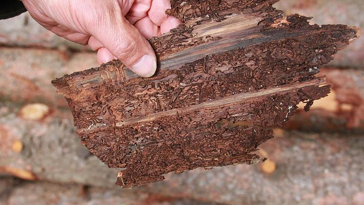 fehlt die Hälfte des Niederschlags", sagt Adolf Herr, Leiter des staatlichen Forstbetriebs Hammelburg. "Um dieses Defizit aufzufüllen, müsste es tagelang regnen." Nur dann könnten sich die Bäume wieder gegen den Buchdrucker wehren, der zwischen Holz und Rinde brütet. Wenig Wasser bedeutet für die Fichte einen niedrigeren Harzdruck. Mit dem wehrt sich der Baum gegen den Schädling.
