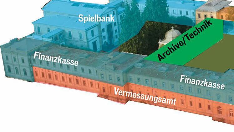 "Hier erwarten wir kaum Kundenverkehr", begründete Teichmann die Einteilung. Insgesamt 1255 Quadratmeter soll die Finanzkasse erhalten, ein Teil der Archive wird in den neuen Querriegeln im Innenhof untergebracht.