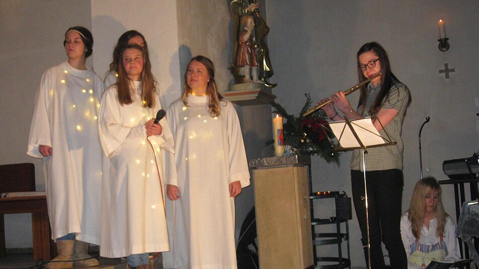 "Das war fernsehreif!", sprach am Ende des fast einstündigen Musicals Elli Kleinhenz aus Schönderling wohl allen Kirchenbesuchern aus der Seele. Mit liturgischen Texten rundete Pastoralassistentin Anja May die Feierstunde am Heiligen Abend ab. Einmal mehr hat die Jugendgruppe von Schönderling bewiesen, dass sie mit ihrer großen Kreativität und ihrem enormen Engagement aus der Dorfgemeinschaft nicht wegzudenken ist.