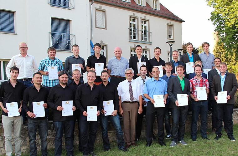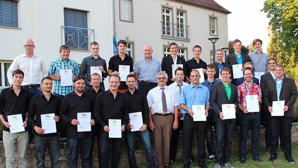 Fachrichtung Fahrzeugtechnik und Elektromobilität: Philip Angermüller aus Hofheim, Alexander Föckler aus Hohenroth, Stefan Geßner aus Hofheim, Christian Lazzari aus Burghausen, Dirk Martin aus Nüdlingen, Robert Meindorfer aus Mühldorf, Christian Metz aus Stangenroth, Daniel Metz aus Schönau, Tino Pabst aus Alitzheim, Thomas Stäblein aus Bad Neustadt, Daniel Trapp aus Oberelsbach und André Vierheilig aus Machtilshausen.