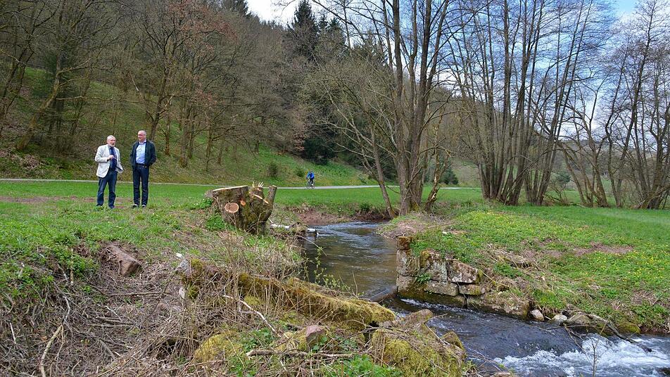 und Alois Müller. Die beiden sind schon lange engagierte Mitglieder des Rhönklub-Zweigvereins Markt Burkardroth und haben in den vergangenen Jahren den Bach und dessen kulturhistorische Bedeutung erforscht. Dabei stießen sie auch auf verschiedene Bewässerungsanlagen: etliche Gräben und Stauwehre.