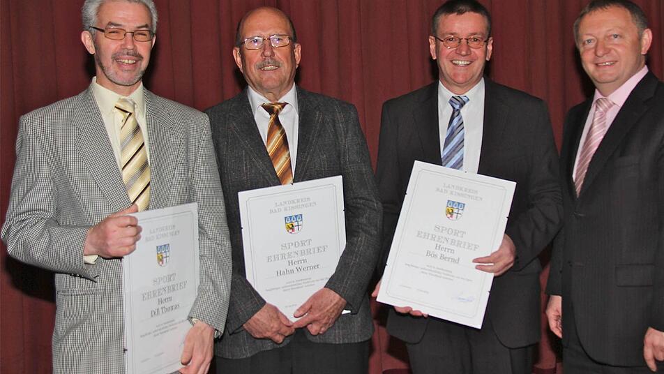 Den dritten Ehrenbrief des Landkreises Bad Kissingen bekam Werner Hahn vom Sportkegler-Verein Bad Kissingen. Hahn war 15 Jahre lang erster Vorsitzender gewesen. Außerdem kann er 22 Jahre als Sportwart und fünf Jahre als Pressewart dazuzählen.Hahn ist Kreissportwart im Bezirksverband der unterfränkischen Kegler. Seit neun Jahren ist er zudem beim Bayerischen Landesverband der Sportkegler im Satzungsausschuss ehrenamtlich tätig.