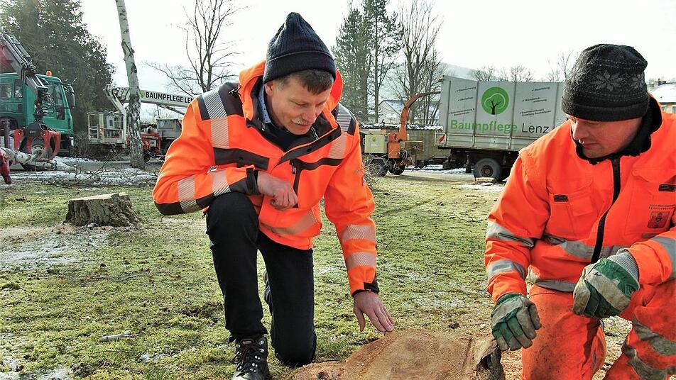 Nach dem schweren Orkantief "Friederike" im Januar fiel deshalb die Entscheidung, auch diese letzten sechs Birken zu fällen. Bad Kissingens Baumkontrolleur Martin Friederich hatte auch bei ihnen Pilzbefall am Stammfuß festgestellt. Friederich: "Mit einiger Erfahrung kann man aus den äußeren Zeichen auf den inneren Baumzustand schließen." Tatsächlich wurde Friederich bei Kontrolle der gefällten Bäume in seinem Urteil bestätigt: Der Pilz war längst ins Innere der Stämme eingedrungen.
