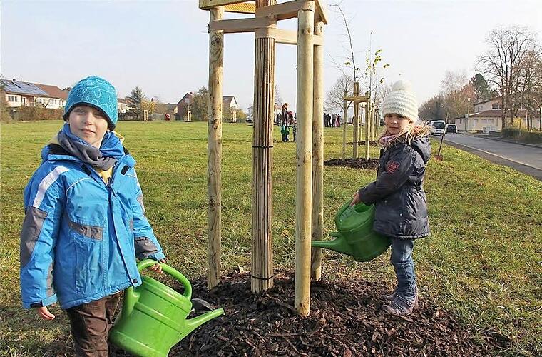 "Sie machen hiermit Mut für viele andere", gratulierte Stross auch seinem Amtsvorgänger Arnold Zeller (CBB) und dessen Enkelkindern Joy und Mika. Sie beteiligten sich ebenfalls an der Baumpflanzaktion. Für einen feierlichen musikalischen Rahmen sorgte die Blaskapelle Pfaffenhausen unter Leitung von Waldemar Danz.