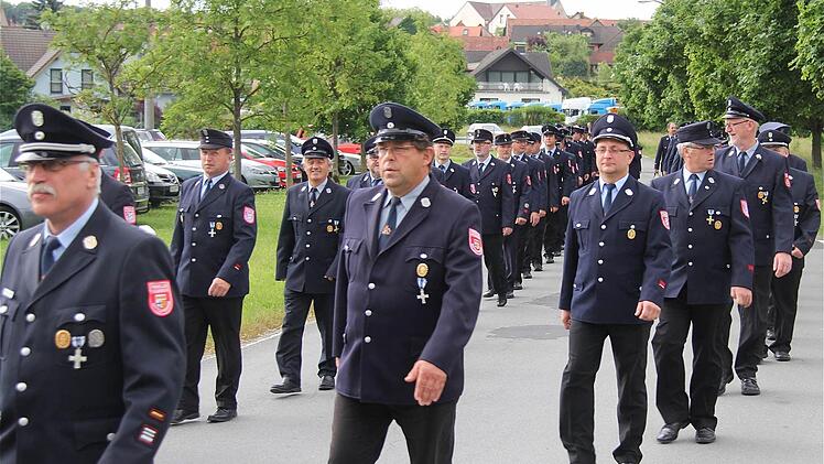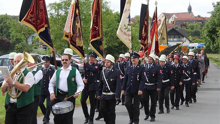 Vorsitzender Andreas Schmitt begrüßte die Abordnungen der Wehren aus dem Gemeindebereich Wartmannsroth sowie aus Hetzlos und Machtilshausen. Außerdem schlossen sich der ansässige Schützenverein Almrausch und der Obst- und Gartenbauverein der Kirchenparade an. Bürgermeister Jürgen Karle (FWG) zollte der Einsatzbereitschaft dieser Wehr Respekt.