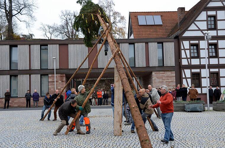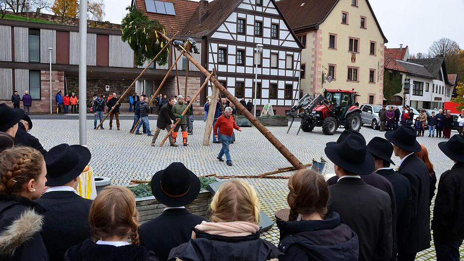 In Burkardroth feiern die Bürger drei Tage Kirmes. Die Fichte fällt der Waldarbeiter.