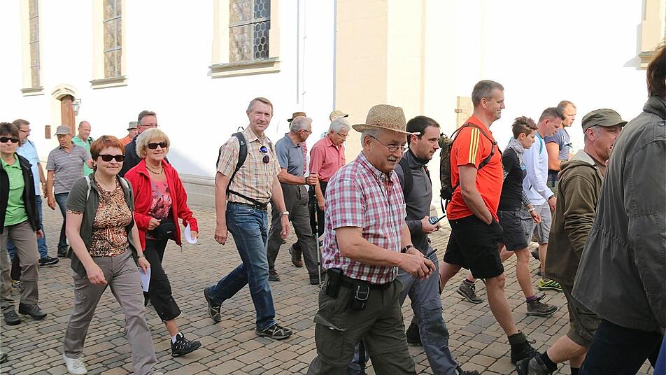 Groß war der Zuspruch der Grenzgänger rund um Fuchsstadt. Die starteten am Samstagmorgen von der Ortskirche aus unter der Leitung von Ortsobmann Lothar Pfülb und Bürgermeister Peter Hart (CSU), der zugleich auch der Kreisobmann der Feldgeschworenen ist. "Es wird heute ein schöner Tag bei angenehmem Wetter", freute sich Pfülb.