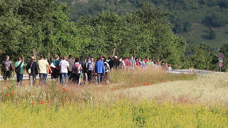 Rund 150 Teilnehmer erkunden in und um Fuchsstadt die verbindenden Grenzen der Heimat. Insgesamt 529 Grenzsteine markieren die "Fuschter" Gemarkung.