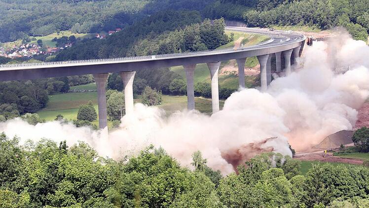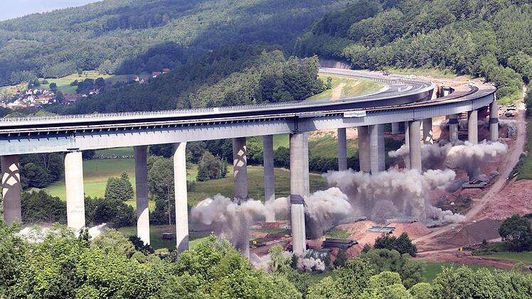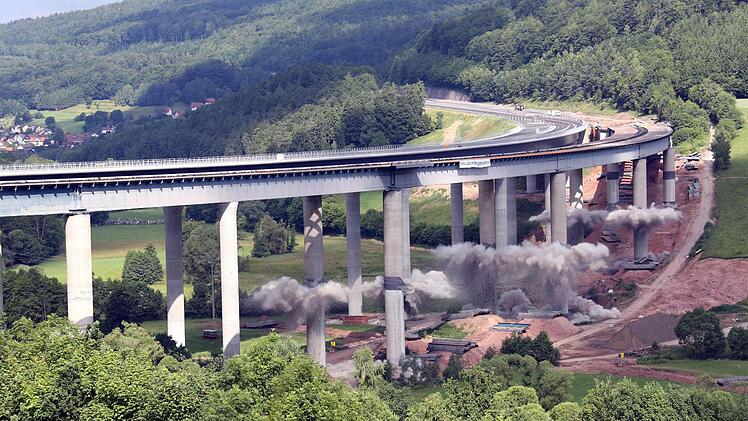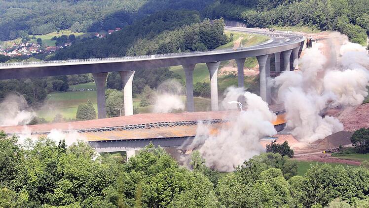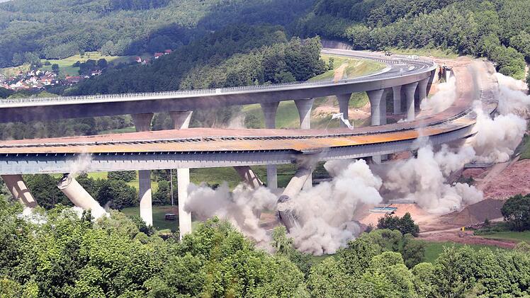 Es war das Ereignis in der Region schlechthin: Die Sprengung der alten Sinntalbrücke der A 7 bei Riedenberg. Die Dimension ist vielen gar nicht so bewusst: Mit einer Länge von 770 Metern ist die alte Sinntalbrücke die wahrscheinlich größte Brücke gewesen, die jemals in Europa gesprengt wurde.