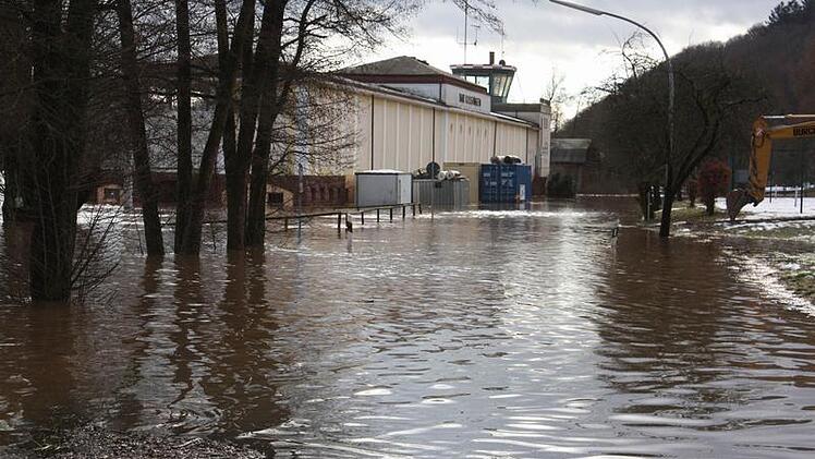 Bad Bocklet war nur noch über Großenbrach auf dem Landweg erreichbar. Überflutet waren auch die Straße von Kleinbrach nach Hausen sowie der Bereich in der Bad Kissinger Au. Am Flugplatz konnten nur noch Schwäne landen.