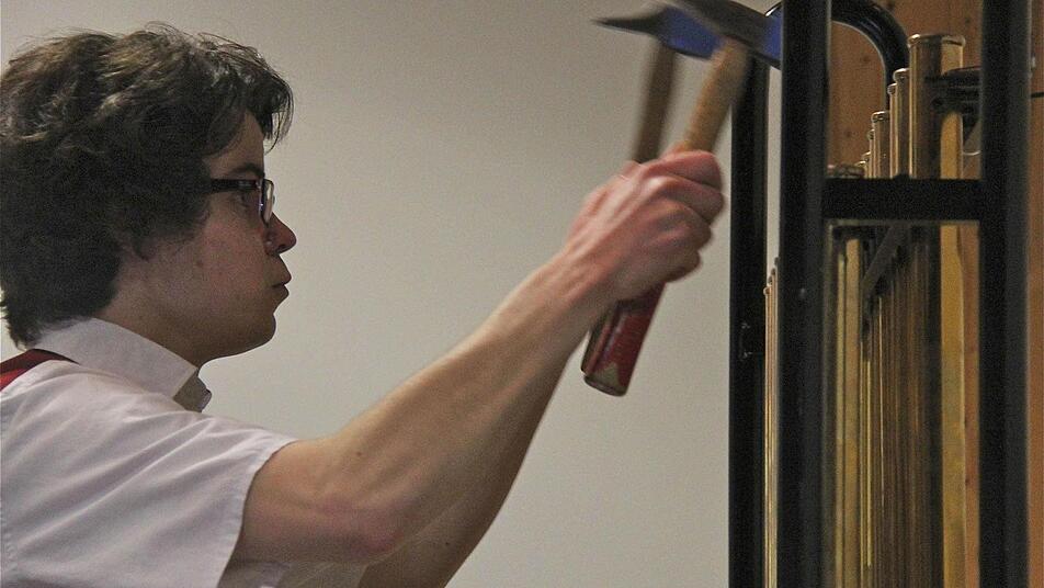 Der gewohnte Platz auf der Bühne in der Eschenbach-Halle reichte für das Orchester nicht aus. Denn allein das erweiterte Schlagwerk mit Pauken, Schlagzeug, Xylophon, Riesengong und Glockenröhren nahm viel Platz ein. So tauschte man kurzerhand die Positionen von Orchester und Publikum.