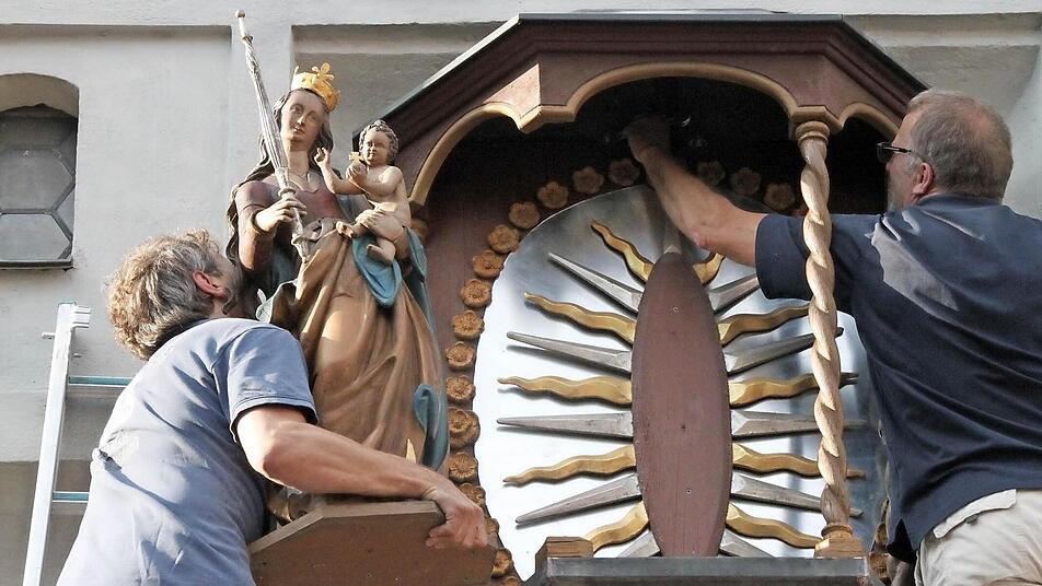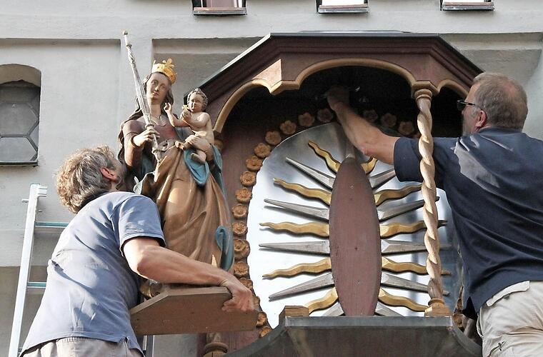Die Spenglerei Hiller hat jetzt, mehr als 80 Jahre später, wieder Spenglerarbeiten am Kapellchen ausgeführt. Restaurator Stefan Lochner hat die Ausbesserungsarbeiten an der Madonna selbst und am Spiegelkranz des Kapellchens übernommen. Er habe beispielsweise die Farben an der Madonna aufgefrischt. Auch der Metallspiegel für den Strahlenkranz am Kapellchen sei von ihm gemacht worden, erläutert der Restaurator auf Anfrage.