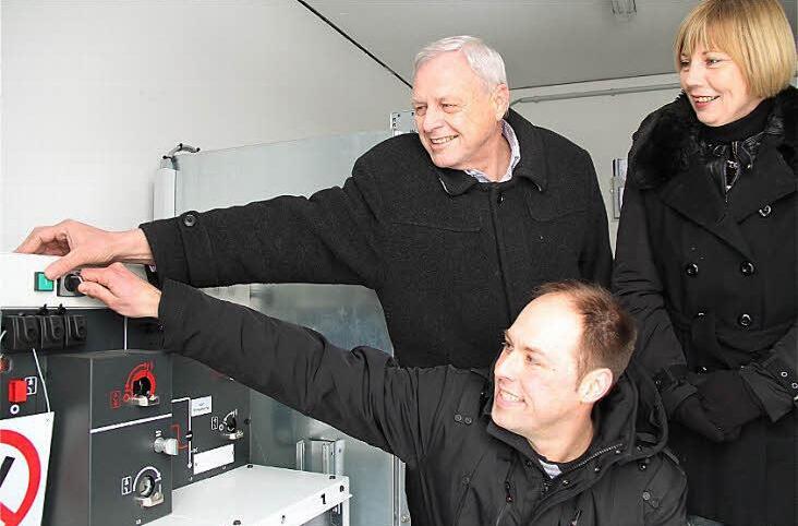 "Auch in den verschneiten Wintertagen gibt es Strom", zeigt Mario Fürst, Vorstand der Deutschen Bürger Energie eG (DBE), anhand der Messinstrumente im Schalthaus. Allerdings nicht die vollen 1300 Kilowattstunden wie im Hochsommer bei knalliger Sonne. Schon im vergangenen Spätherbst war die Photovoltaikanlage fertig installiert. Der halbe Kilometer zwischen dieser Anlage und der Überlandleitung von Eon wurde mit einer unterirdischen "Nabelschnur"-Zuleitung zwischen zwei Schalthäuschen hergestellt, die der Gesellschaft gehören.