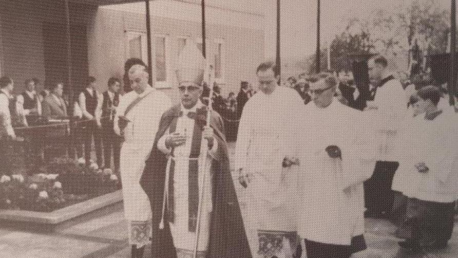 Nach nur einjähriger Bauzeit wurde das moderne Gotteshaus am 12. Oktober 1968 durch Bischof Stangl eingeweiht. Neben der Kirche war im Zuge der Bauarbeiten ein Pfarrzentrum für die in der Nachkriegszeit stark gewachsene Zahl der Katholiken errichtet worden. Der Bevölkerungsanstieg war auch der Grund für den Neubau des Gotteshauses. "Heute ist die Kirche viel zu groß", sagt Kirchenverwaltungsmitglied Dietmar Schmitt. Die 500 Plätze in der Kirche sind kaum mehr gefüllt, vielleicht noch an Weihnachten oder bei einer großen Beerdigung.
