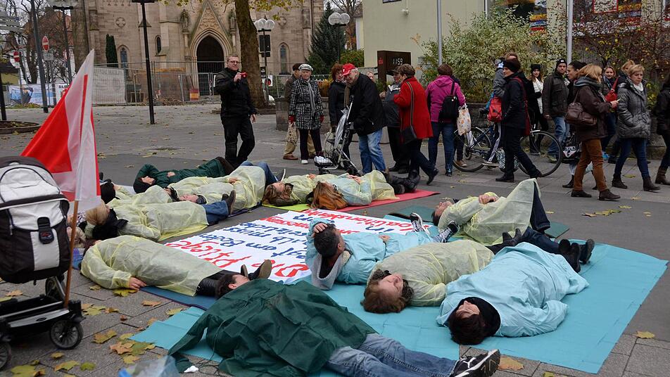 Einen Flashmob zur Pflegesituation haben Beschäftigte in der Alten- und Krankenpflege veranstaltet. Überraschend trafen sich am Samstag Mittag rund 20 Pflegekräfte in Arbeitskleidung in der Fußgängerzone vor dem Landratsamt, nachdem die Gewerkschaft ver.di dazu aufgrufen hatte. Sie machten mit dieserAktion auf Missstände in ihrem Beruf aufmerksam.