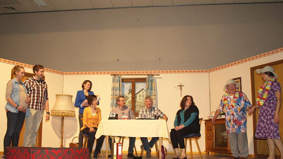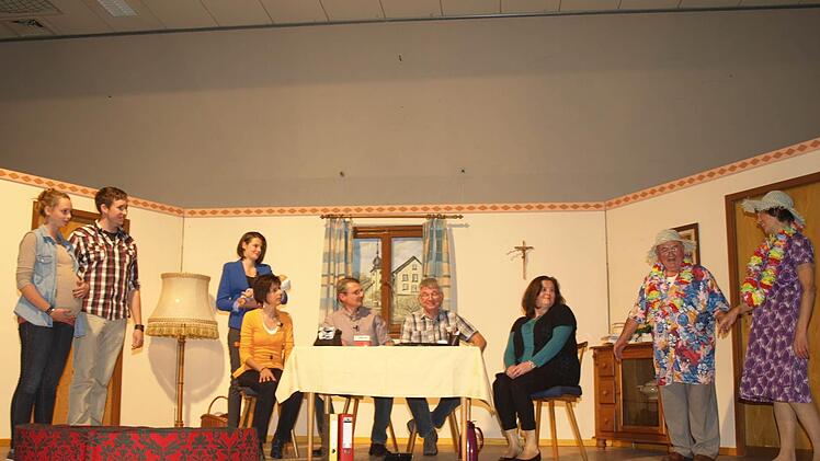 Kann Neu-Rentner Julius wie im Betrieb auch zu Hause sein Organisationstalent mit Masterplänen, Schwachstellenanalysen und Kosten-Nutzen-Rechnungen durchsetzen? Er versucht alles, wird aber von den turbulenten Ereignissen im Lustspiel "Überraschungen" überrollt. Mit dem Zweiakter aus der Feder von Elli Stahl begeisterten die Laienspieler des Pfarrgemeinderats die mehr als 300 Besucher.