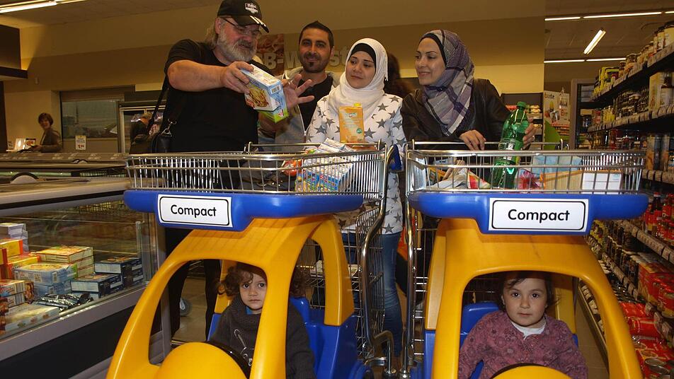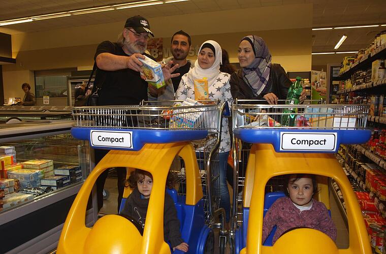 11 Kinder besuchen die Schule, die meisten der 13 Kleinkinder den Kindergarten. Alle hoffen, in Deutschland Bleibe zu finden und einen Neuanfang zu starten. Diesem Ziel dient die sprachliche Kompetenz, die Peter Iberl mit einem Einkaufsbesuch im Oerlenbacher Edeka-Markt vor Ort praktizierte. Ganz neugierig waren die Asylbewerber auf all das, was in den Regalen steht oder an der Fleischtheke serviert wird.