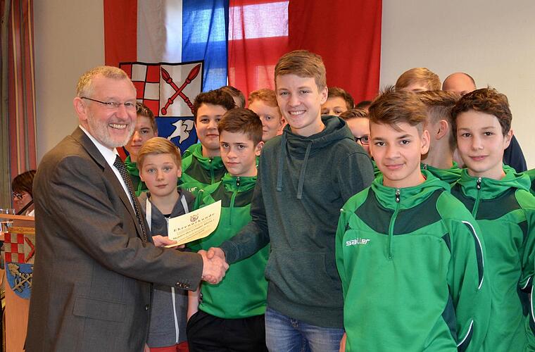 Normalerweise verbringen Justus, Julius und ihre Freunde den Samstagnachmittag wie viele andere Teenager: Sie spielen Fußball, zocken auf der Playstation, chillen oder treffen sich. Eine steife Runde mit Rathauschef, festlicher Musik, Kuchen und vielen Reden ist da wohl kaum angesagt. Und doch kamen die Jungs am Samstag nicht umhin, den Nachmittag im Waldfensterer Pfarrgemeindezentrum ausnahmsweise genauso zu verbringen, in steifer Runde. Schließlich bekamen Justus, Julius und ihre Freunde eine Auszeichnung vom Bürgermeister Waldemar Bug (ödp) überreicht.