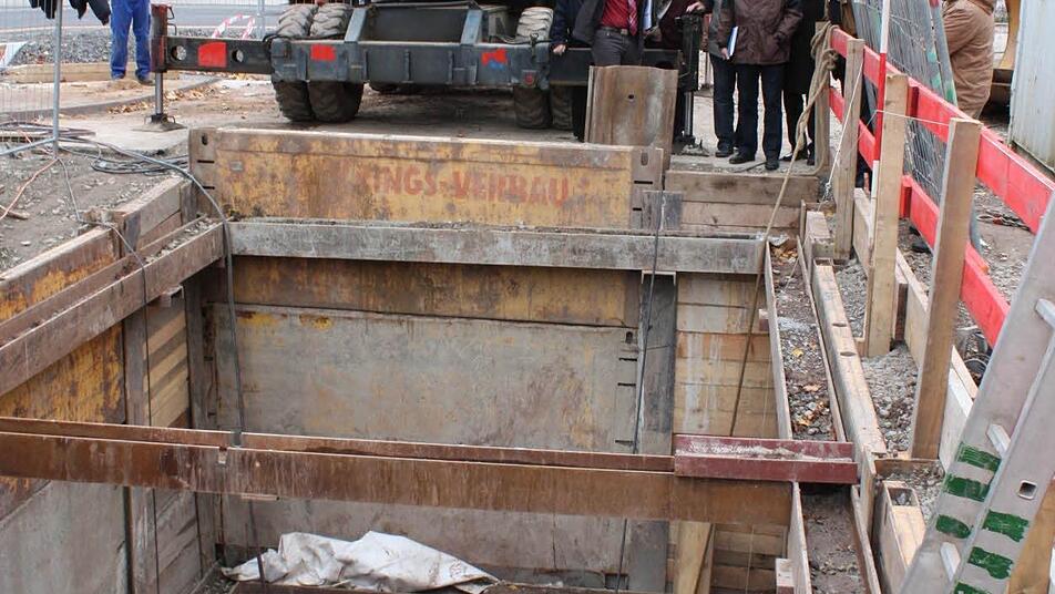 Fast fertig ist die sechs mal zehn Meter große Startgrube für die Tunnelbohrmaschine an der Amtsgerichtskreuzung. Im Moment werden Gleitschienen verlegt, in der nächsten Woche sollen die Arbeiten "unter Tage" losgehen. Dabei kommt ein Bagger zum Einsatz, in dem ein Arbeiter liegen muss, weil die Röhre in der Von-Hessing-Straße einen Durchmesser von 1,40 Metern haben wird. Das Erdreich wird nach hinten transportiert. Das geht schneller als bei einer Bohrung. Weil an verschiedenen Stellen gleichzeitig gearbeitet wird, ist die Bauzeit relativ kurz.