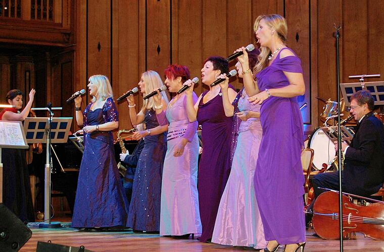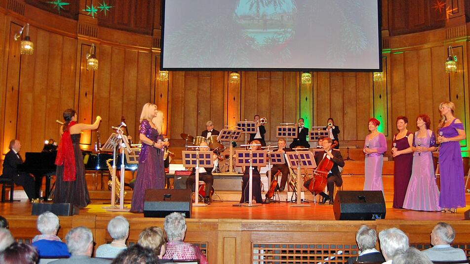 Spätestens als die Musiker im feinen Smoking sowie die beiden Musikerinnen und die sechs Sängerinnen in ihren prächtigen Abendroben die warm ausgeleuchtete Bühne des bis in den Balkon voll besetzten Max-Littmann-Saales betraten, musste jedem der 1 000 Besucher klar sein, dass ihn kein normales Kurkonzert erwartete. Mit einer gewaltigen Fanfare des vierköpfigen Bläserensembles wurde dann auch das teils stimmungsfrohe, teils besinnliche Potpourri aus den bekanntesten deutschen und internationalen Weihnachtsliedern eingeleitet.