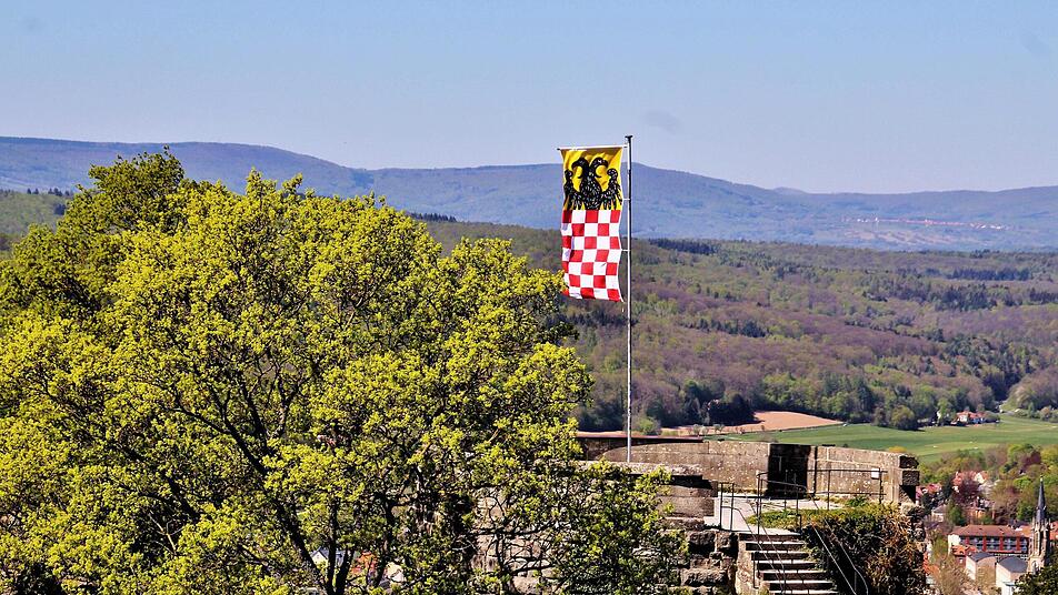 "Sonst reichen selbst vier Fahnen pro Jahr, die der Wind auf den Türmen zerfleddert nicht", meint Bernhard Thomas und verspricht: "Wenn sich die Frühjahrsstürme gelegt haben, dann weht der Henneberger Doppeladler wieder" und "grüßt freundlich den Berg und das Tal" wie es im Bechstein Gedicht über Burg Botenlauben heißt.