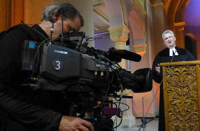 Der Fernsehgottesdienst des ZDF kam am Sonntagvormittag live aus der Erlöserkirche in Bad Kisssingen. Trotz der Kameras im Kirchenschiff blieb der geistliche Aspekt der Messe zum Toten- und Ewigkeitssonntag immer im Vordergrund.