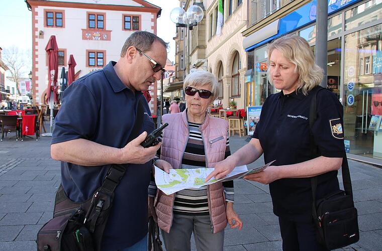 Bayerisches Wappen auf dem Ärmel und Funkgerät in der Tasche: Martina Lenk und Wolfgang Fichte gehen durch die Innenstadt und werden sofort angesprochen. Vom uneinsichtigen Hundehalter bis zum Kurierfahrer in der Fußgängerzone, vom Plausch mit Einzelhändlern bis zur Frage nach dem Weg: Die Aufgaben der Sicherheitswacht sind vielfältig. "Es geht nicht um unmittelbare Aufgaben der Strafverfolgung", stellt Stefan Haschke, Chef der Bad Kissinger Polizei, fest. "Die Sicherheitswacht soll durch ihre Präsenz das Sicherheitsgefühl der Bürger erhöhen."