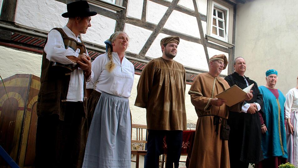 Rund um das Alte Rathaus von 1703, "dem Schmuckkästchen von Reiterswiesen" hat der Heimatverein Botenlauben ein abwechslungsreiches Programm zusammengestellt, das Landleben zeigt, geschichtliche Informationen bereithält und als Sahnehäubchen ein kleines Lustspiel vor der Fachwerkkulisse auf die Bühne bringt.