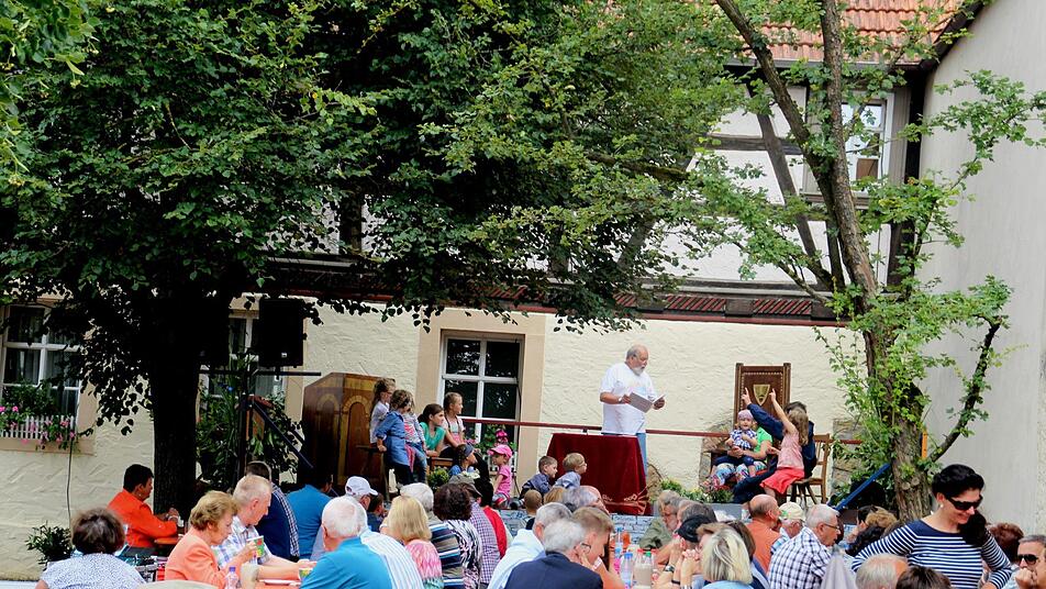 Der Dorfbackofen raucht, der Gänsebrunnen plätschert. Besucher sitzen gemütlich zusammen unter den Linden im Rathausgarten, schauen zu wie fränkisch getanzt wird, lassen sich zum kühlen Bier die "Reitschwieser Linsespitzersuppe" schmecken und genießen einen schönen Sommertag. Landleben anno dazumal ist angesagt beim Dorffest in Reiterswiesen. Der Andrang zeigt, wie unterhaltsam eine Zeitreise in die nähere und weitere Vergangenheit sein kann.