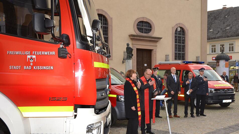 Drei Fahrzeuge für die Freiwillige Feuerwehr der Stadt Bad Kissingen erhielten den kirchlichen Segen.