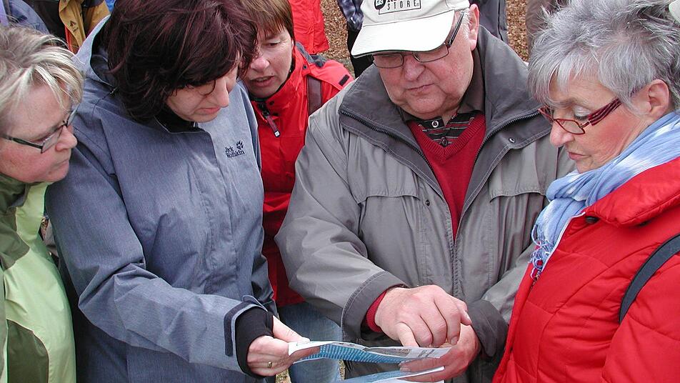 Auf 23 Kilometern erkundeten 70 Teilnehmer die Grenzen rund um Ebenhausen. Bürgermeister Siegfried Erhard und Siebener-Obmann Manfred Greubel hatten Geschichten und Hintergrundinformationen mitgebracht.
