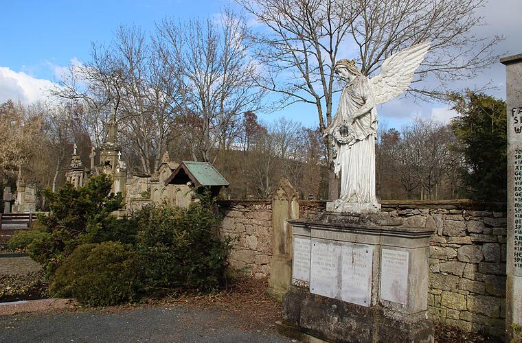 Ein ungeklärtes Thema ist für Klaus Schebler auch die Frage, wie dauerhaft die historischen Grabdenkmäler in diesem Bereich erhalten werden können. Er verweist beispielsweise auf eine markante,weiße Engelsfigur, die von Flechten überzogen ist. Diese müsste zumindest gereinigt werden. Für Klaus Schebler sind diese Grabstätten aufgrund ihrer Größe und künstlerischen Ausgestaltung erhaltenswert. Die Stadt sollte erwägen,wenn es keine Nachfahren mehr gibt, für den Erhalt dieser Denkmäler aufzukommen.