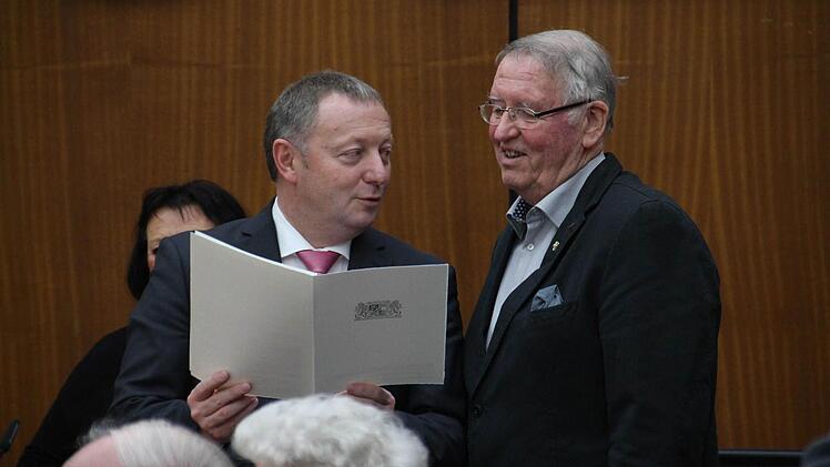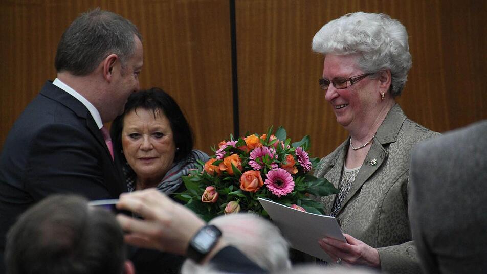 Geehrte Franz Danz wurde mit der kommunalen Dankurkunde ausgezeichnet und für seinen Einsatz in der Marktgemeinde Elfershausen geehrt. Das Ehrenzeichen des Ministerpräsidenten erhielten Christina Goll aus Poppenroth für ihren Einsatz in der Pfarrgemeinde St. Ulrich, Roswitha Kast aus Bad Kissingen für ihr Engagement in der Pfarrei St. Bonifatius, Helmut Renner für seine Arbeit für den DJK Nüdlingen, Heinz Steidle für seinen Einsatz in der Kissinger Sektion des Deutschen Alpenverein, Wolfgang Wimmel aus Poppenroth für seinen Einsatz in den Ortsvereinen, Elisabeth Hein aus Aschach für ihr Engagement in der katholischen Pfarrgemeinde und Ingrid Schubert aus Geroda für ihre musikalische Arbeit.