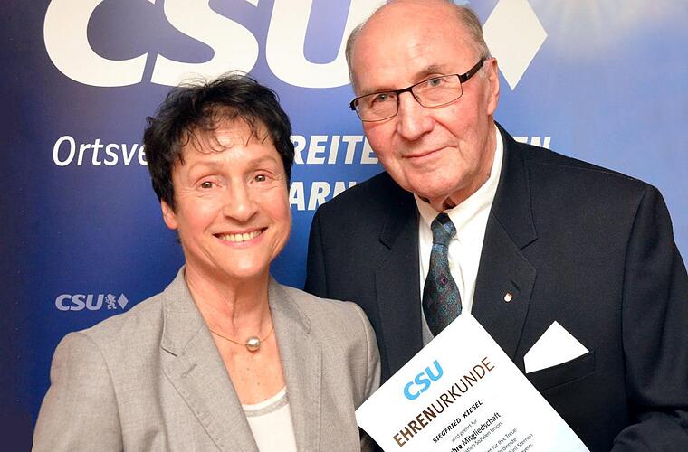 Bei der Versammlung des CSU-Ortsverbands Reiterswiesen-Arnshausen wurde Siegfried Kiesel für seine 50-jährige Mitgliedschaft in der CSU geehrt.