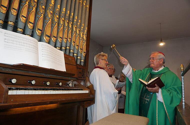 Als "Königin der Instrumente" bezeichnete Pfarrer Hubert Grütz die Orgel und freute sich mit den Kilianshöfern, dass in der Kilians-Kirche nun auch ein solches Instrument zur Ehre und zum Lobpreis Gottes erklingt. Die Kosten für eine eigene Orgel seien für die kleine Gemeinde nicht unerheblich gewesen, doch die Liebe zur Liturgie sei das entscheidende Kriterium gewesen und nicht die Kosten. Für Kilianshof sei es daher ein besonders Geschenk, dass Bischof em. Hofmann zur Orgelsegnung gekommen war. "Das zeigt uns, dass nicht nur die großen Gemeinden zählen, sondern auch so eine kleine im äußersten Winkel des Bistums", dankte Pfarrer Grütz. Sein Dank ging auch an Pater Georg Andlinger vom Kloster Kreuzberg, der ebenfalls gekommen war, um mit den Kilianshöfern den Gottesdienst zu Orgelsegnung zu feiern.