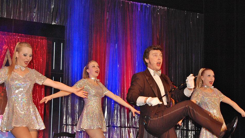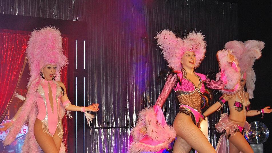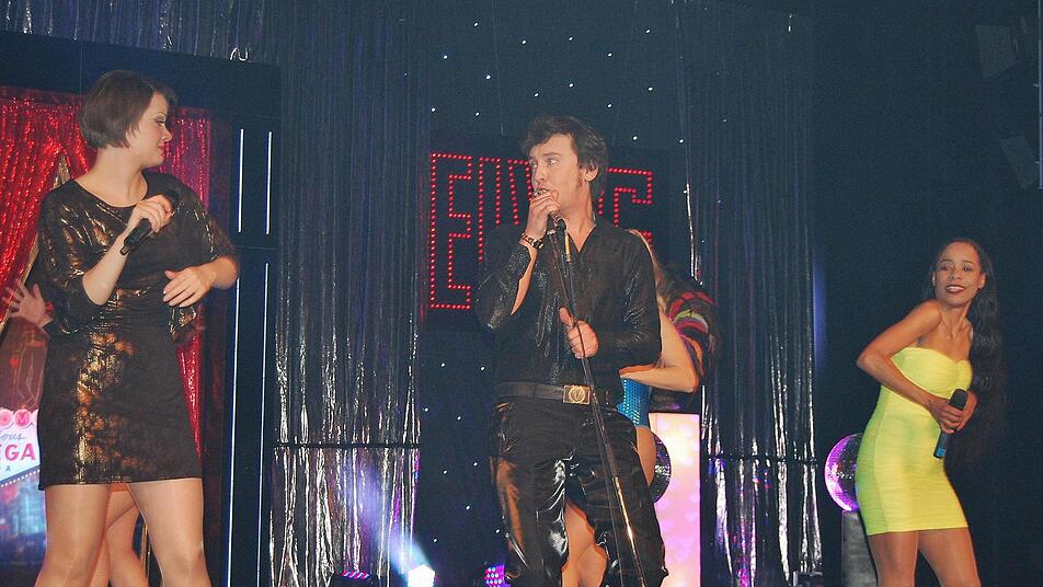 Das über zweistündige Programm mit drehenden Disco-Kugeln, rotierenden Farbscheinwerfern, drei Tänzerinnen und gut ausgesteuerter Playback-Musik war eine liebevolle Parodie an die großen Stars unvergesslicher Las-Vegas-Shows.