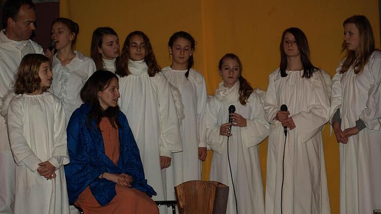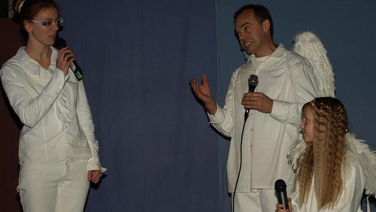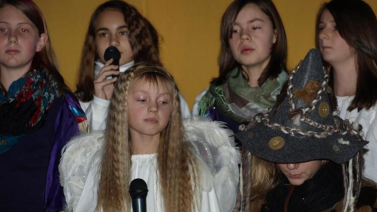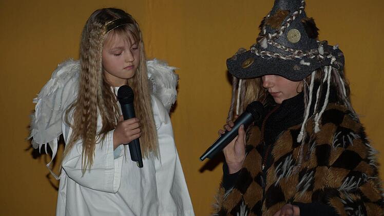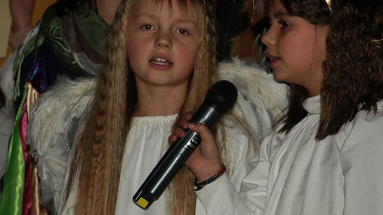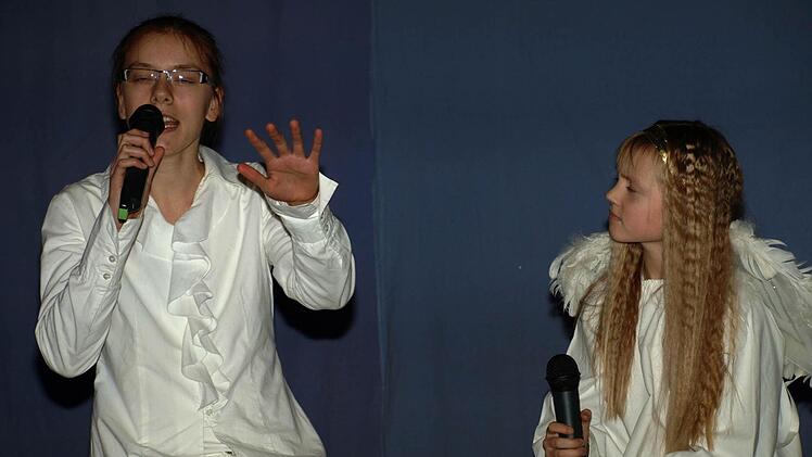 Die beiden Gloria-Engel Franziska Stahl und Selina Warmuth beeindruckten ganz besonders: Sie identifizierten sich mit der Rolle des kleinen Engels, der alles gibt, um anderen zu helfen und riskiert, nicht sein Ziel zu erreichen. "Das Spiel hat uns selbst sehr gefallen. Da war es nicht schwer, den Text zu lernen und die Lieder zu singen", erklärt Franziska Stahl.