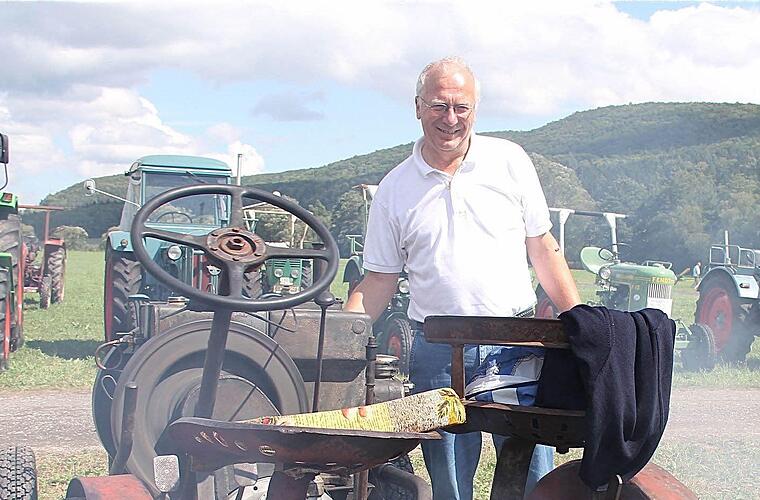 Bewundernde Blicke zog der Traktor von Otto Granich auf sich, als er am Sonntag durch Obererthal fuhr. Unter den Schleppern im Festzug der "Bulldogfreunde Vorrhön" war sein Fahrzeug ein echter Exot. Sein Vater, Otto Granich senior (* 1908), hat den Traktor 1937 selbst gebaut.