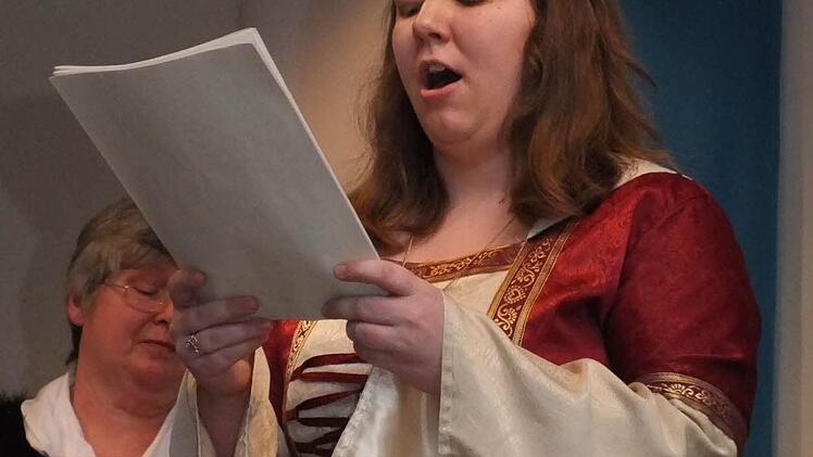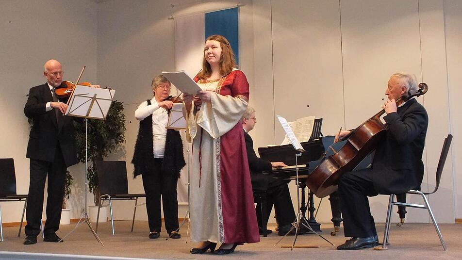Diesen Part hatte Christel Keß übernommen, die selbst aus Oberelsbach, dem Geburtsort Rathgebers stammt. Mit dem Lied "Vom April-gehen" entführten Susanne Handwerker (Sopran) und Berthold Gaß am Klavier die Zuhörer in den bevorstehenden Frühling.