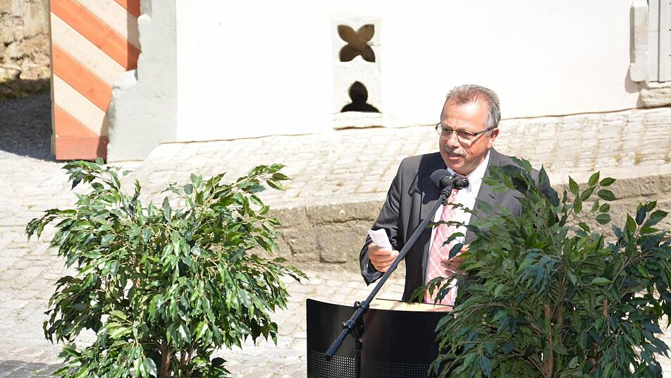 Die Sanierung nannte er handwerklich hervorragend ausgearbeitet, die Planung klug. Karin Renner, stellvertretende Bezirkstagspräsidentin meinte, die Sanierung sei eine unaufhaltsame Idee gewesen. Die Architekten Eduard Knoll und Klaus-Jürgen Edelhäuser überreichten die Schlüssel für das Gebäude an Martin Kuchler - es war ein riesiger Schlüssel aus Teig, der beim Helferfest gefuttert werden soll. Die Feier wurde umrahmt von einem Klarinettentrio der städtischen Musikschule.