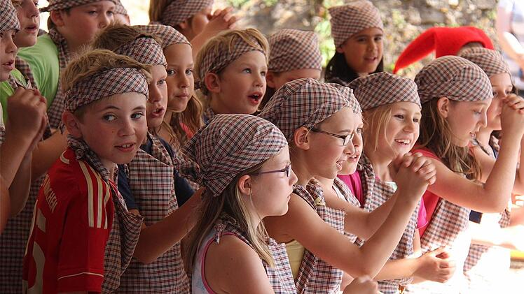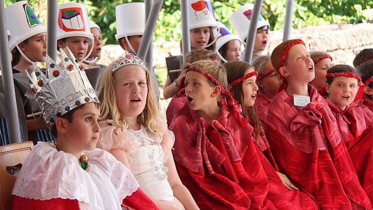 Grundschüler aus der Region präsentierten auf der Trimburg Rolf Zuckowski "Der König hat Geburtstag". Der Autor und bekannte Kinderliedermacher ist Pate der Musifit-Aktion, die auch im fünften Jahr ihr Ziel erreichte.