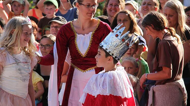 Wenn der König Geburtstag hat, dann soll er sich darüber auch freuen können. Doch braucht es gehörig viele Anläufe, um diesen zunächst recht depressiven König in die fröhliche Stimmung zu bringen. Nach einer knappen Stunde des Kindermusicals "Der König hat Geburtstag" (von Rolf Zuckowski) im Innenhof der Trimburg war es aber so weit: der König lachte froh.