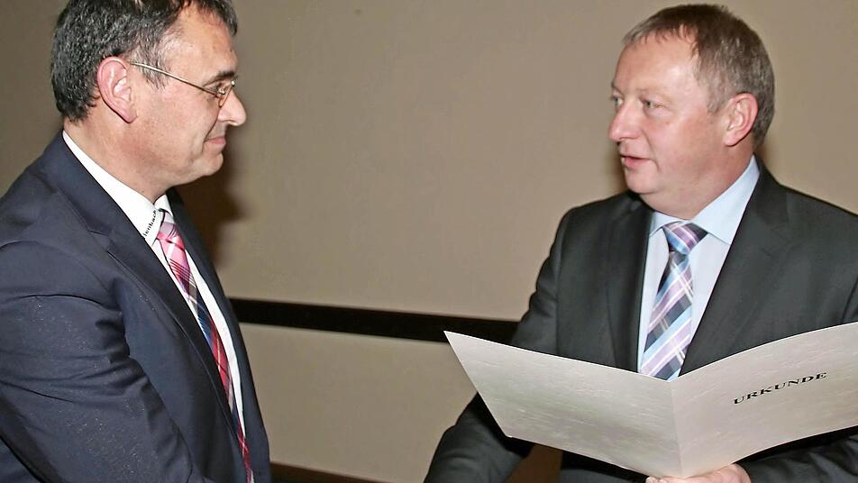 Für seine großen Verdienste in zwanzig Jahren ehrenamtlicher Tätigkeit als Gemeinderat und unter anderem als Vorsitzender der Vereinsgemeinschaft in Rottershausen, zeichnete der Landrat dann Robert Erhard mit der Kommunalen Dankurkunde des Staatsministeriums des Inneren aus.